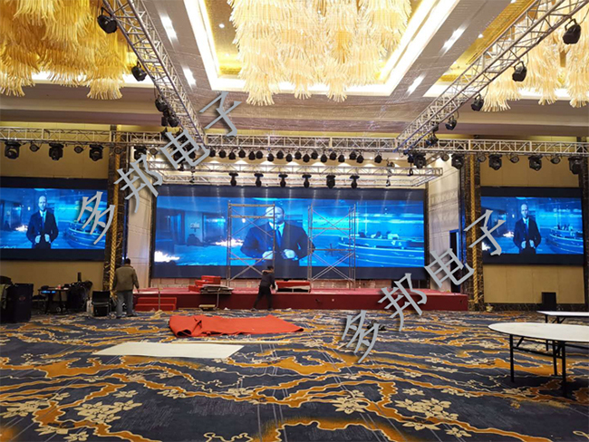 熱烈祝賀南府喜宴宴會廳P4室內(nèi)全彩一主屏兩側(cè)屏(70.91平方)交付使用